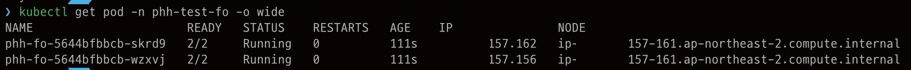 파드를 띄운 후 어떠한 노드에 할당되었는지 체크해 보시면 위와같이 157 대역의 노드에 잘 할당된 것을 확인할 수 있습니다.