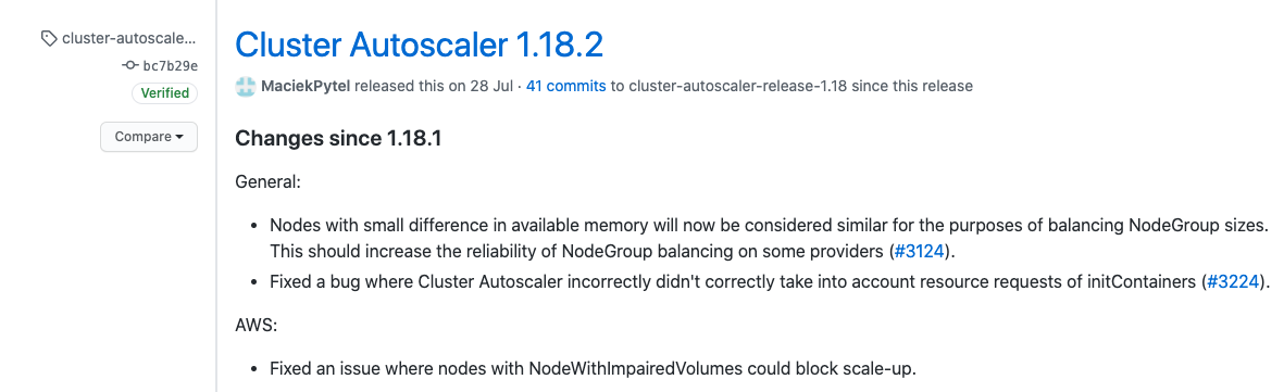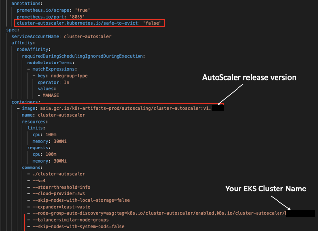 https://github.com/kubernetes/autoscaler/releases에서 EKS Cluster와 맞는 버전을 찾아서 수정해주시면 됩니다.