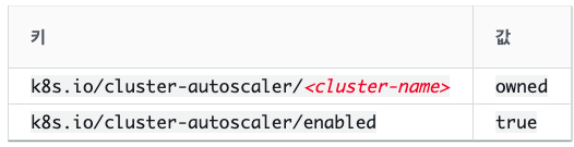 먼저 적용하고자 하는 노드 그룹 EC2에는 아래와 같은 태그가 적용되어야 합니다.