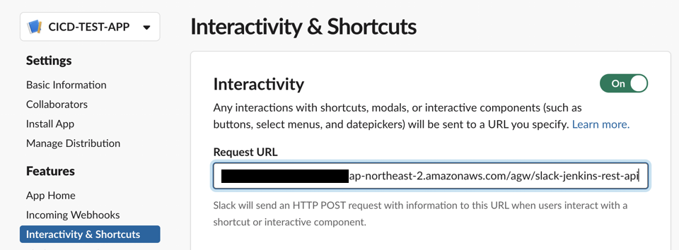 curl -X POST -H \"Authorization: ${env.SLACK_TOKEN}\" -H \"BuildInfo: ${env.JOB_NAME}/${env.BUILD_NUMBER}/${COMMENT}\" -H \"Content-type: application/json\" https://{your api gateway}.ap-northeast-2.amazonaws.com/agw/slack-interactive-component