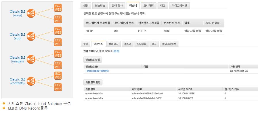 Classic Load Balancer는 각 서비스 별로 LB를 구축해야 합니다.