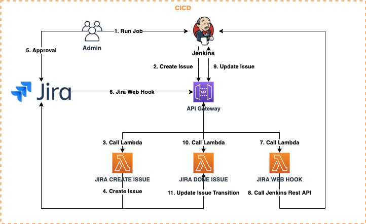 저는 그렇게까지 체계화 된 구조가 아닌 딱 배포부분만 지라에서 이슈를 자동으로 발급하고 승인하려고 합니다.