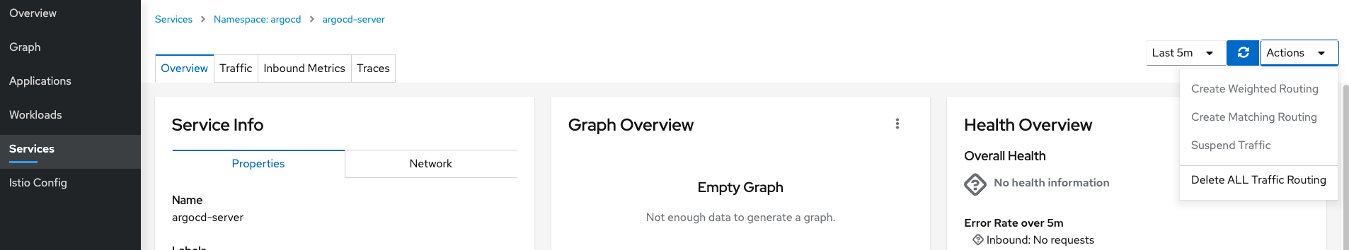 또한 설정에 따라서는 Kiali 대시보드에서 istio destination rule이나 virtual service에서 설정하듯 네트워크 라우팅에 대한 제어를 넣어줄 수 있습니다.