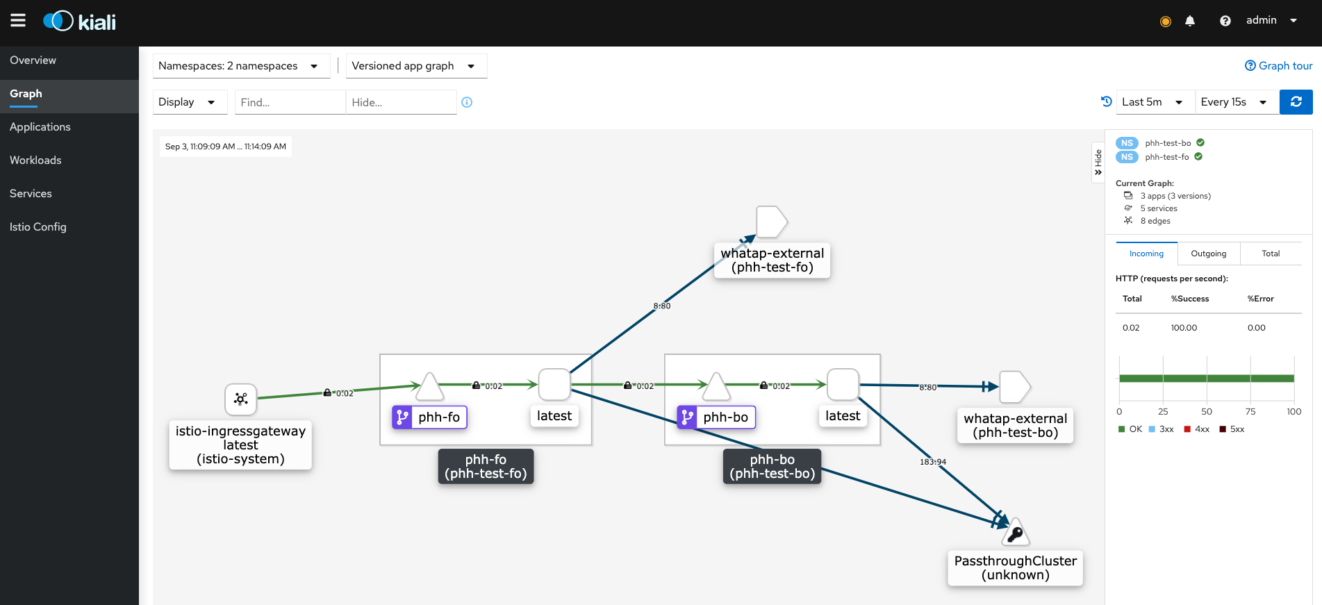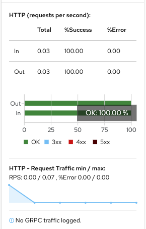 아래와 같이 실제 데모로 구축한 fo / bo 어플리케이션의 request per second 값이나 보안통신이 되고있는지 등