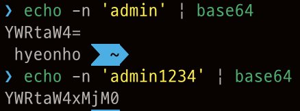 Secret은 아래와 같으며 아래 들어가는 Value는 반드시 base64 인코딩을 거쳐야 합니다.