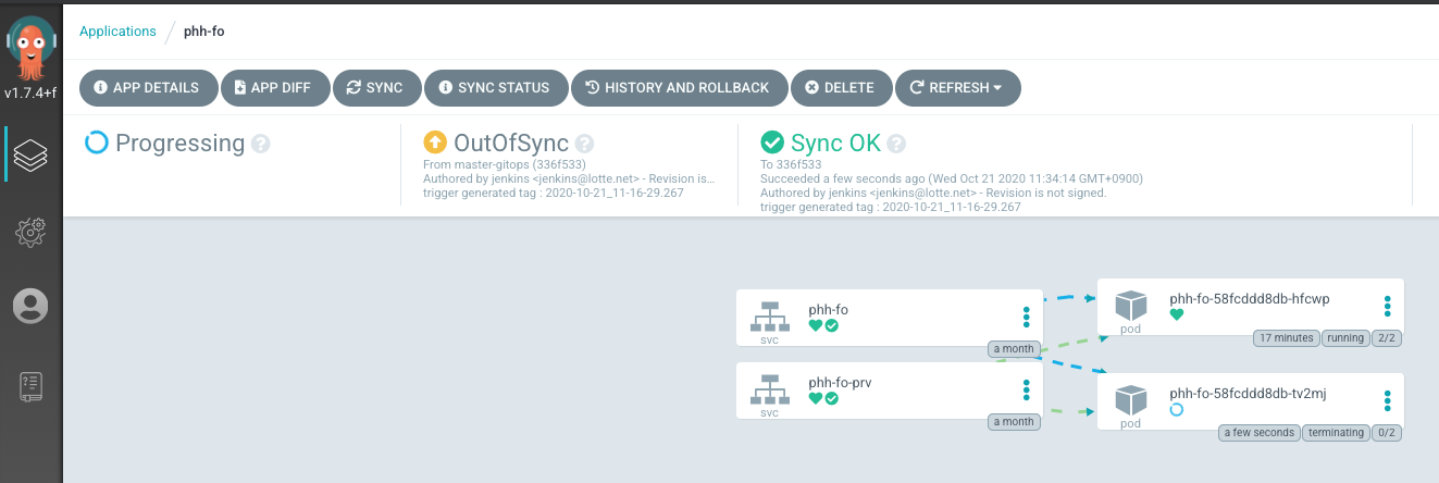 또한 ArgoCD에서 이를 Sync를 맞춰 2개를 늘리려하더라도, HPA에 의해 바로 종료되는 것을 아래서 볼 수 있습니다.