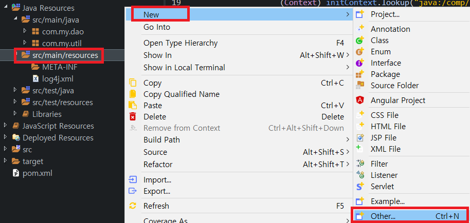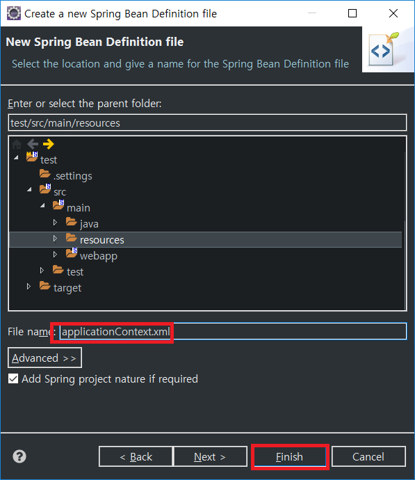 자 이제, 라이브러리 설정이 끝났으므로 resources에서 applicationContext.xml을 만들자