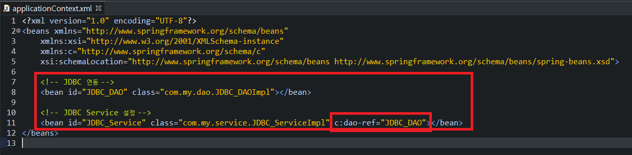 따라서 위와 같이 c:dao-ref= 로 생성자로 dao를 받는다고 한다면,