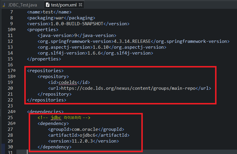 구글에 maven jdbc를 치면 가장 맨위에 나오는 사이트에 들어가서 복붙하면 된다.