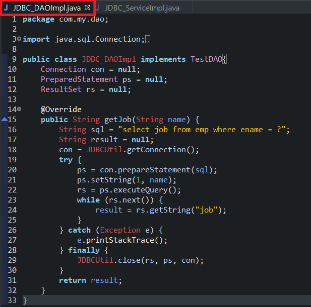 DAOImpl은 위와 같으며 JDBC연동 할 때와 형태가 같다.
