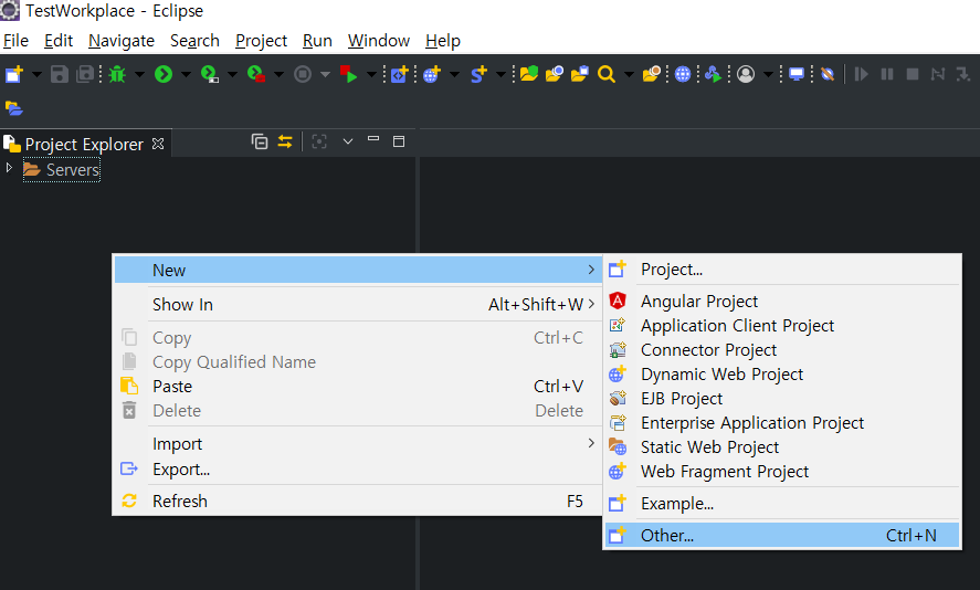 마우스 우클릭 -> 프로젝트 -> Other로 가도록 하자