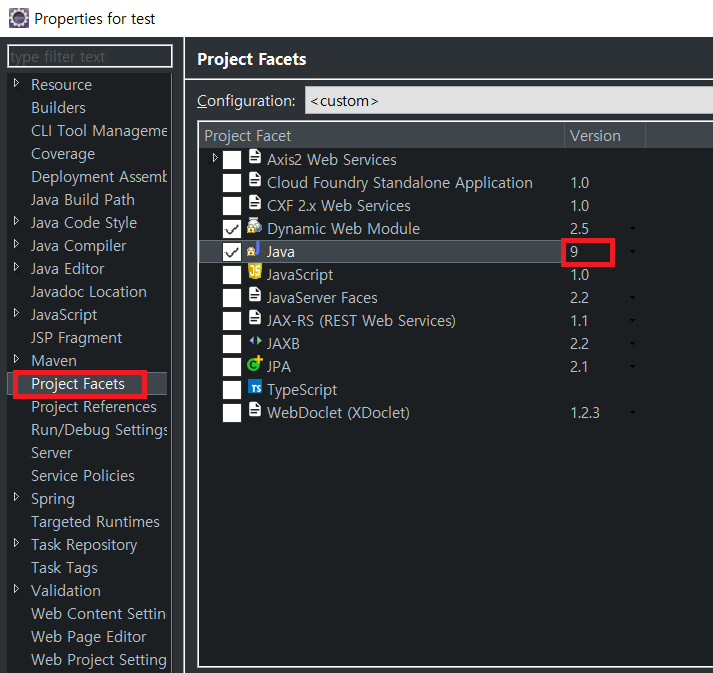 Project Facets에서 역시 JDK버전과 같게 맞추어 주도록 하자