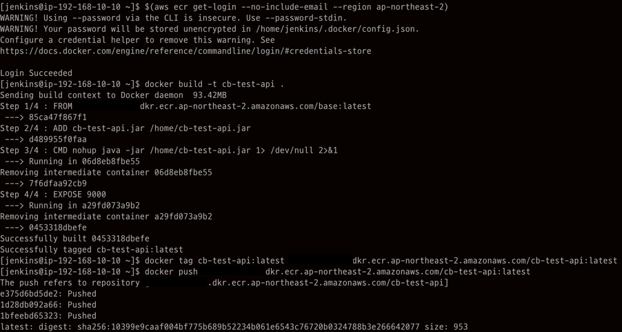 전에 EC2 CICD에서 성공했던 Jar파일을 젠킨스 서버로 가지고 와서 도커파일을 만들어 이미지를 만든 후 ECR로 푸시해주겠습니다.