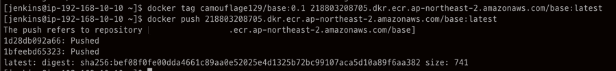docker tag camouflage129/base:0.1 account_number.dkr.ecr.ap-northeast-2.amazonaws.com/base:latest
