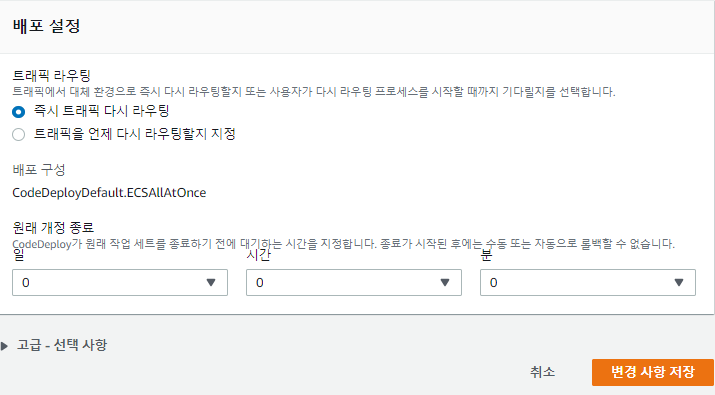 만들어진 코드 디플로이 배포그룹에 들어가서 대기시간을 수정해줍니다.