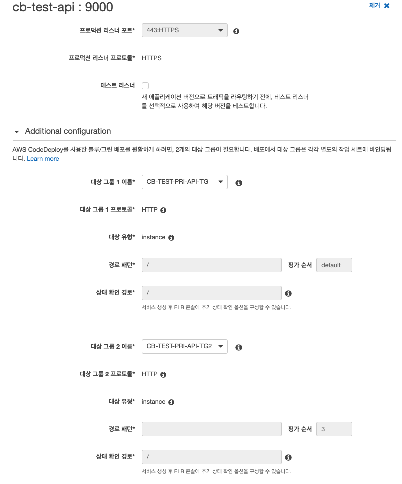 이후 블루그린 배포는 2개의 타겟그룹을 가지고 있어야 하기 때문에, 한개 더 동일한 세팅의 타겟그룹을 만들어줍니다.