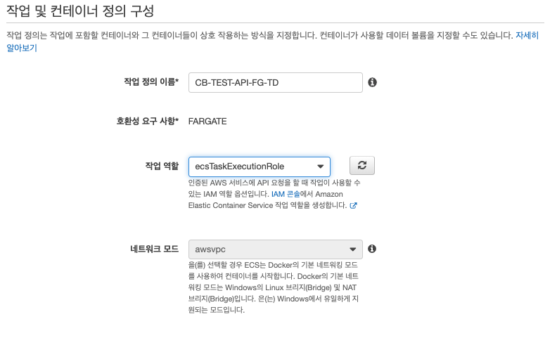 먼저 Task Definition부터 만들어주도록 하겠습니다.