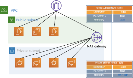 이러한 역할을 해주는 것이 AWS의 NAT GW이며, 이에 알맞는 라우팅 구성 또한 할 수 있어야합니다.