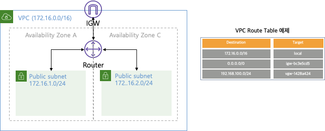 AWS에서의 라우터는 AWS에 있는 Gateway와 네트워크 대역대의 길을 정의해줍니다.