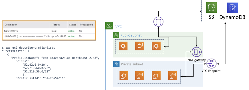 S3와 DynamoDB와 Private한 통신을 하고 싶으시다면, VPC Endpoints를 사용하시면 되고,