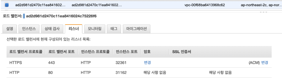 service.beta.kubernetes.io/aws-load-balancer-ssl-cert: arn:aws:acm:ap-northeast-2:{account-number}:certificate/{id}