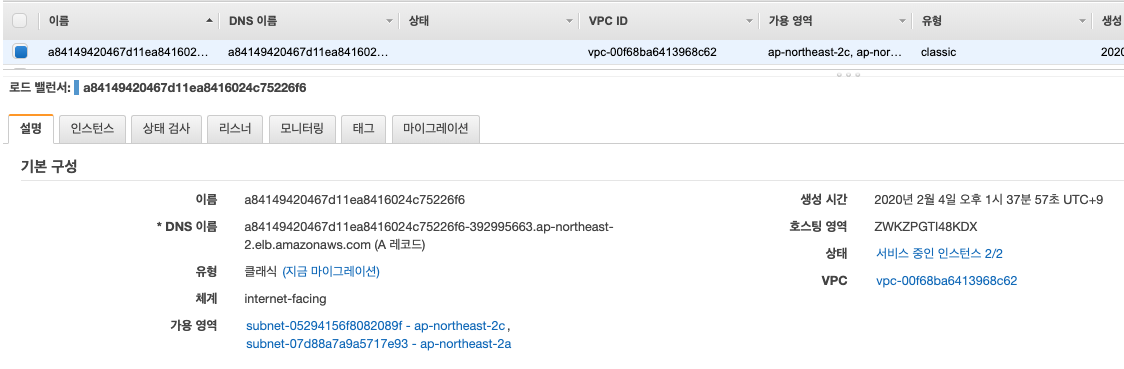 수정한 후 아래와 같이 CLB가 하나 생성되며, 이를 통해 서비스를 확인할 수 있습니다.
