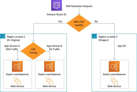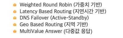 Route53에 Record를 등록할 때, 분산처리에 대한 부분을 설정할 수 있는데, 아래와 같은 기준으로 서비스를 제공합니다.