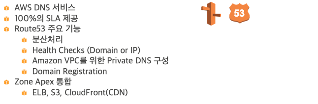 Route53서비스는 100% SLA를 보장하며 도메인을 구매해서 사용하실 수 있습니다.
