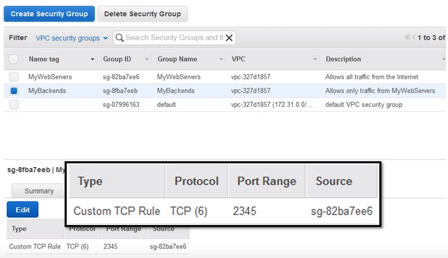 해당 서버 혹은 서비스에 적용된 방화벽 정책인 Security group을 가지고 각 Security Group끼리 포트를 제어할 수 있는 것이 장점입니다.