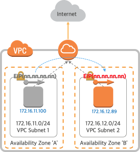 위에서 보시는 것과 같이 고정 IP를 한 서버에서 떼서 다른 서버에 붙이는 형태로 언제든지 원하는 서버에 고정된 IP를 줄 수 있습니다.