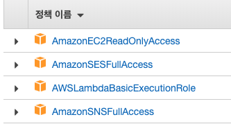 람다 함수를 만들기전, ec2 describe와 ses 전송, sns publish에 관한 권한이 있어야 하기 때문에 Lambda Role을 하나 만들어주겠습니다.
