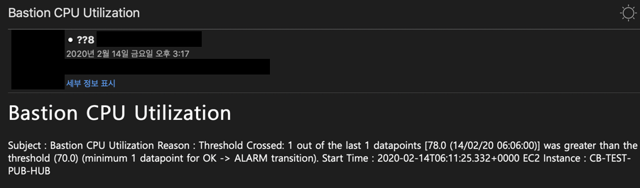 | Cloudwatch 경보 설정 - 1. 기본 SNS를 통한 알림 (0) | 2020.02.14 |