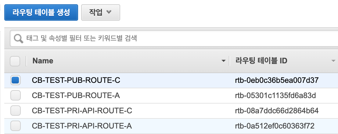 네이밍 규칙을 따라 라우팅 테이블을 만들어 준 후, Public A부터 설정해보도록 하겠습니다.