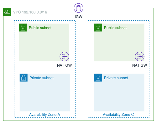 NAT GW는 인터넷 망을 통해야 하기 때문에 반드시 Public에 위치해야하며, 각 가용영역에 알맞게 구성해주시면 됩니다.
