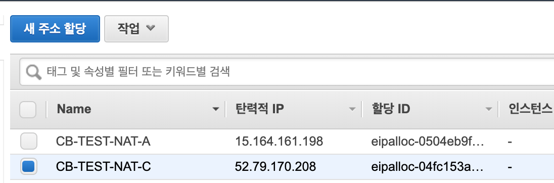 NAT는 퍼블릭 IP가 필요하기 때문에 EIP에서 이중화까지 고려, 2개의 IP를 할당 받겠습니다.