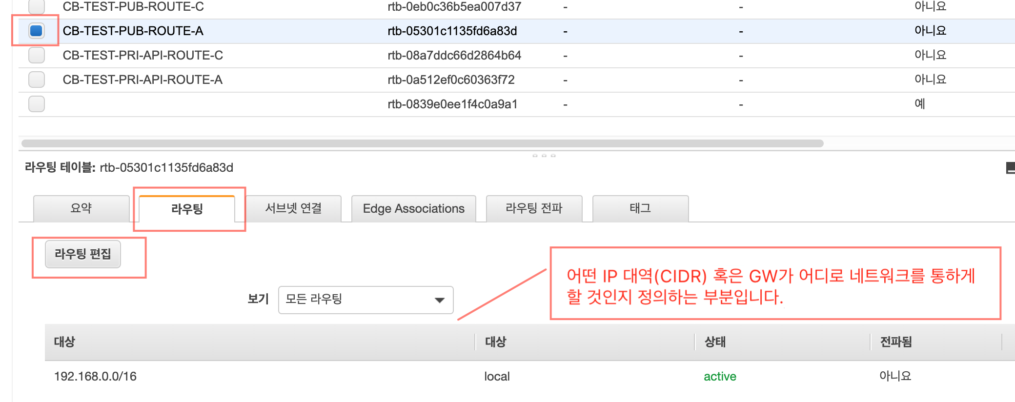 라우팅은 Intro에서 언급했듯이, 어떤 CIDR가 어느 곳으로 통신을 하게 할지 길을 정의하는 것으로