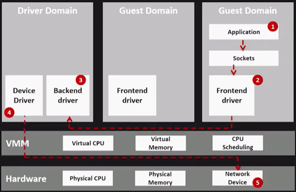내부 Front Driver를 호출 -> Driver OS에 있는 Back -> Device Driver -> Network Driver를 호출 하게 됩니다.