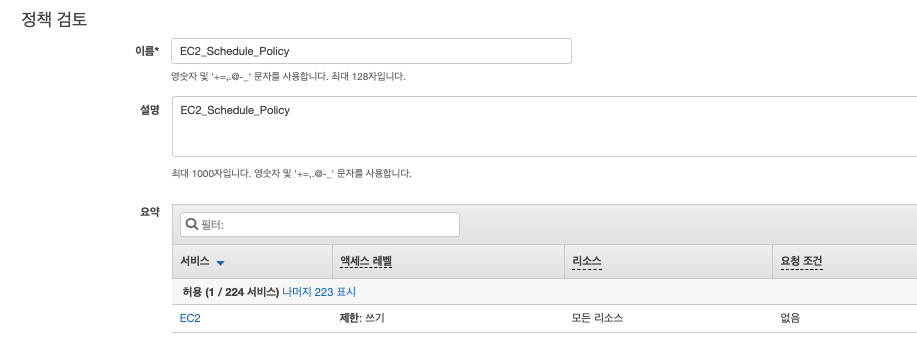 먼저 Lambda가 EC2를 크고 끄는 작업을 수행해야하므로, 해당 권한을 가진 Role을 구성해주겠습니다.
