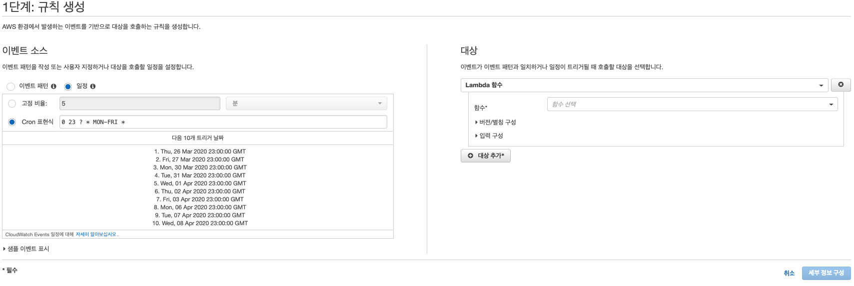 https://docs.aws.amazon.com/ko_kr/lambda/latest/dg/services-cloudwatchevents-expressions.html